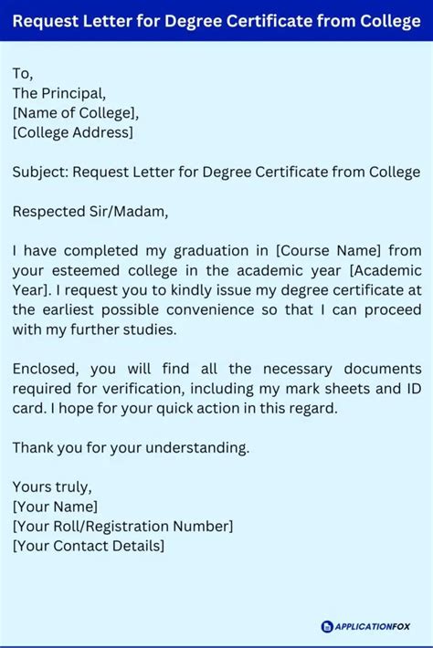 Students would have to write a request letter to the institute’s head in order to obtain their degree certificate. When drafting a letter to request your degree certificate from the university, it's essential to maintain clarity and politeness. To, the registrar, [name of the university], [university address] subject: Clearly state your name, batch, stream, and the reason for requesting the.